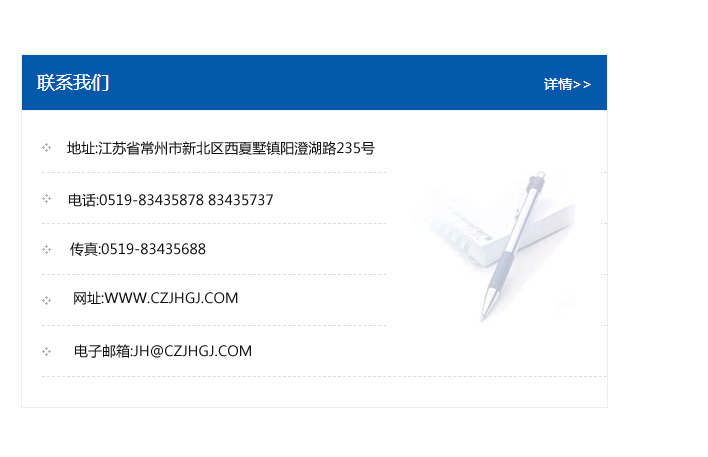 地址:常州市新北區友邦商務大廈1幢16、17層  電話:0519-85101652  傳真:0519-85112595  郵編:213022  網址:www.cz-jiayue_cn.kqnm120.com  郵箱:xiajifengaa@163.com